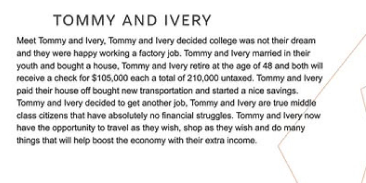 Amy, Kanly, Riley, Alexis, Justin and Nicole are considering lowering class family units, however they are able to sustain a decent lifestyle with the new Economics system.
